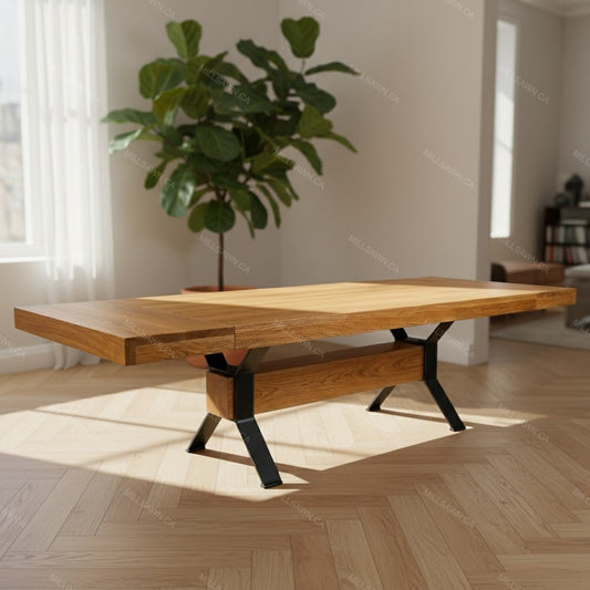 Ratcliffe Solid Wood Top With Metal Base Table + 2-16" End Leaves