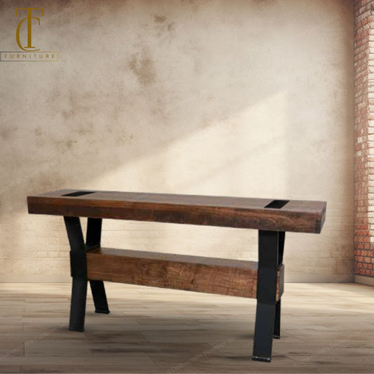 Bogart Solid wood Top with Metal Base Sofa Table