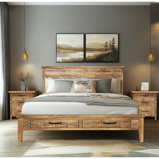 Midland Solid wood Bed with 2 Drawer Storage Footboard