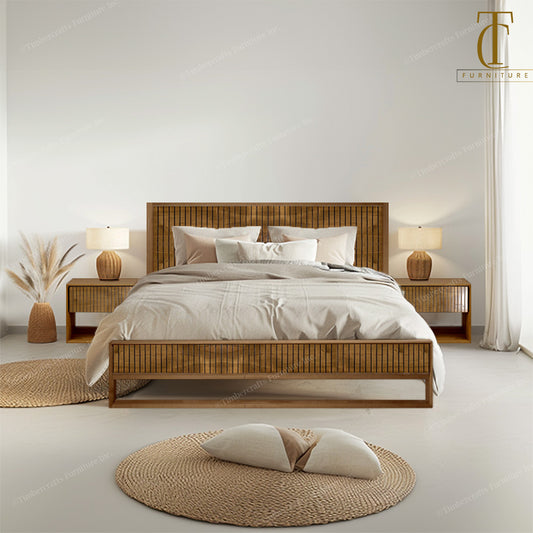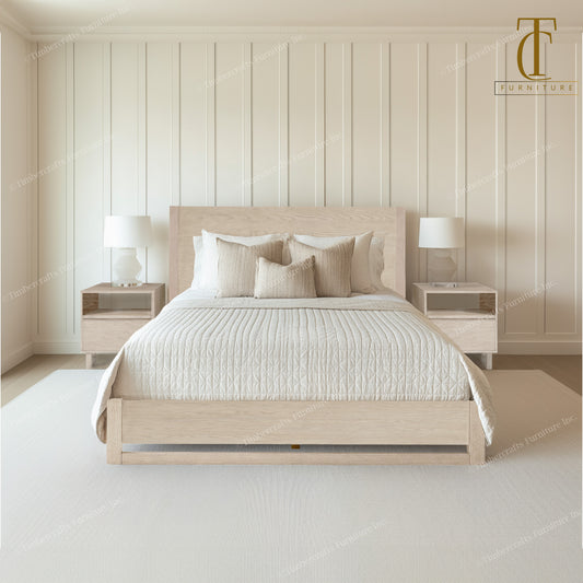 Vallery LX Solid Wood Bed W/ Upholstered Headoard
