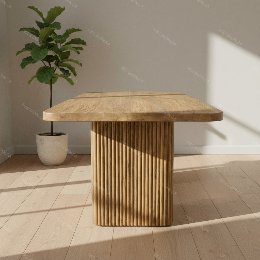 Discover the outstanding craftsmanship of the Vallery Dining Table, meticulously handcrafted in Ontario. This elegantly designed furniture piece is available in solid woods such as wormy maple, brown maple, or oak, and comes in a range of stains. Its stunning aesthetic will surely enhance the ambiance of any home or cottage.
